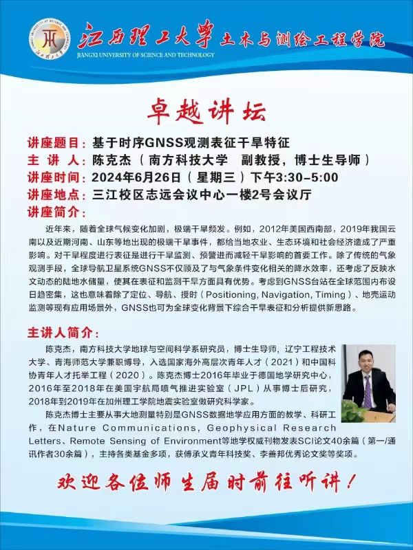 卓越讲坛:基于时序GNSS观测表征干旱特征
