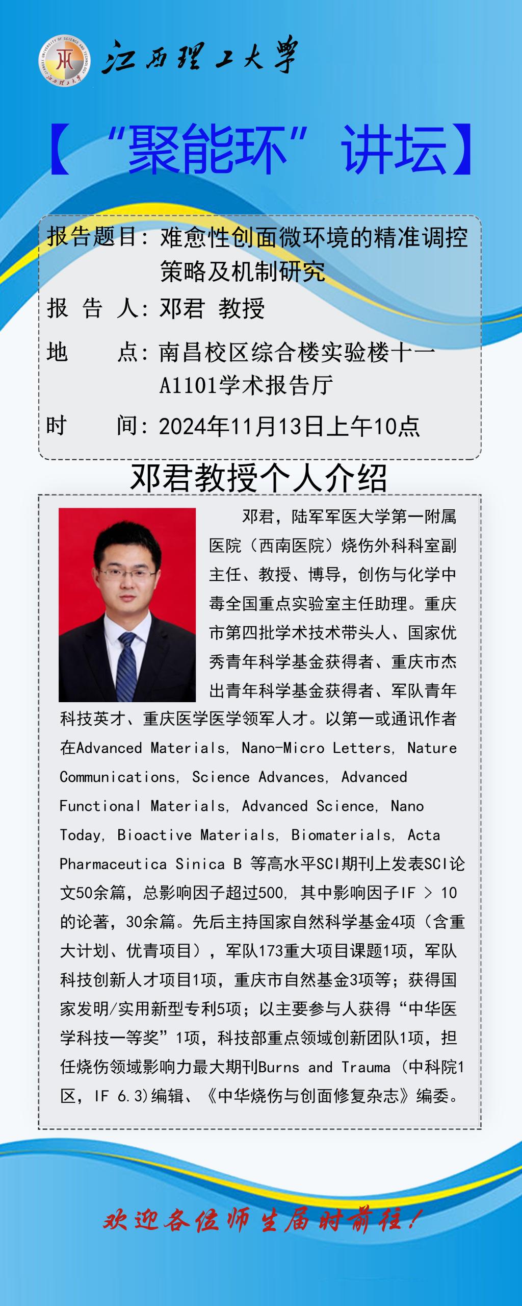 聚能环讲坛|邓君:难愈性创面微环境的精准调控策略及机制研究