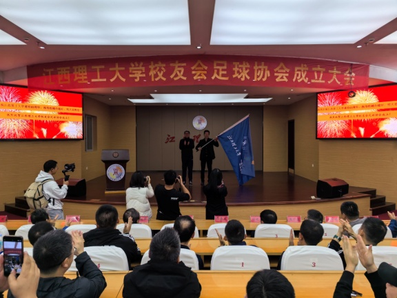 龚姚腾代表学校校友会向足球协会会长授旗。廖春发代表学校向为大会精心筹备、默默付出的各位校友致以崇高的敬意和衷心的感谢,向出席大会的各位校友致以诚挚的问候和美好的祝愿,向足球协会的成立和第一届理事会的产生表示热烈的祝贺。他向广大校友介绍了建校65周年举办的系列庆祝活动情况,通报了学校近年来各项事业取得成绩和发展态势,并提出四点希望:一是牢记办会宗旨,将足球协会打造成为母校与校友、校友与校友之间联络感情、共享资源、合作共赢的重要交流平台;二是积极推广校友会的形象和品牌,提高校友会的知名度和影响力,为打造全国示范性校友会奠定基础;三是积极践行“服务校友、服务母校、服务社会”的理念,集聚资源汇聚力量,助力母校事业高质量发展;四是开展特色活动,让更多校友积极加入足球协会,参与到足球协会工作中。