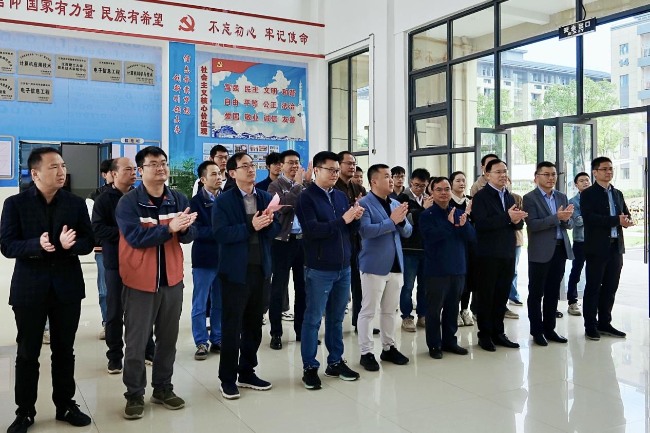 随后,校企双方进行了校企合作联合创新实验室揭牌仪式,并合影留念。企业代表一行还参观了信息工程学院实验室、大学生创新工作室。