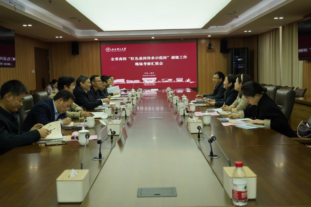 本网讯 12月6日下午,以华东交大党委委员、党委宣传部长杨东明为组长的考察组一行来校进行全省高校“红色基因传承示范校”现场考察。校党委副书记罗仙平,校党委常委、党委宣传部部长盛晓明出席考察汇报会并陪同实地考察。马克思主义学院、研究生院、学工部、团委等相关部门负责人参加汇报会。汇报会由盛晓明主持。
