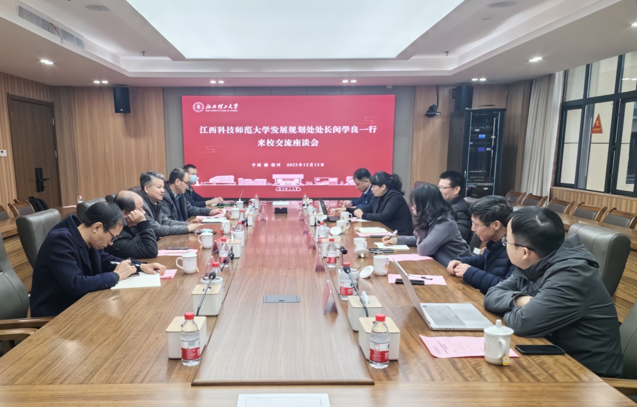 本网讯  12月13日上午,江西科技师范大学发展规划处处长闵学良一行来校调研学位点建设和一流学科建设情况。校党委常委、副校长董冰岩出席交流座谈会,完美online(中国)发展规划处、人事处、计划财务处等部门负责人参加了调研座谈。会议由研究生院院长、学科建设办公室主任赵奎主持。