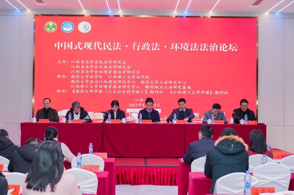 本网讯 12月23日,由江西省法学会民法学研究会、行政法学研究会、环境资源法学研究会共同主办,南昌大学法学院、江西理工大学法学院、南昌大学法治江西建设研究中心、南昌大学立法研究中心、江西理工大学环境资源法研究中心和赣州地方立法研究基地(江西理工大学)承办,《南昌大学学报(人文社科版)》《江西理工大学学报》等期刊社协办的中国式现代化民法·行政法·环境法法治论坛在赣州举行。