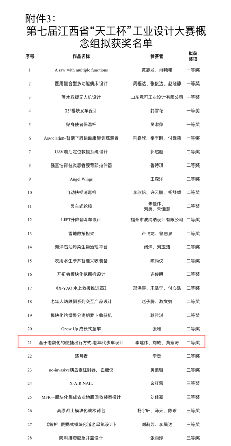 完美online(中国)师生在2023年江西省“天工杯”工业设计大赛中喜获佳绩