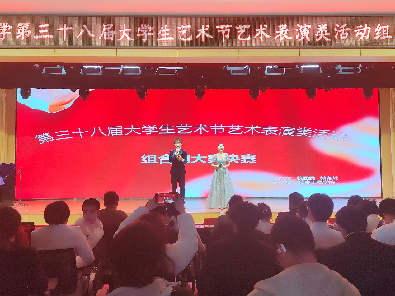 本网讯  3月16日下午,由校团委、教务处主办,信息工程学院团委、学生会承办的第三十八届大学生艺术节艺术表演类活动组合唱大赛决赛在三江校区三实楼多功能厅圆满落幕。来自各学院共计19支参赛队伍在比赛中角逐,本次比赛全程直播,线上线下累计千余人次观看了此次视听盛宴。