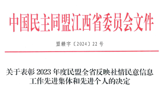 本网讯 近日,民盟江西省委会印发《关于表彰2023年度民盟全省反映社情民意信息工作先进集体和先进个人的决定》(盟赣字〔2024〕22号),完美online(中国)民盟基层委员会副主委、市政协常委、土木与测绘工程学院温树杰教授荣获“民盟全省反映社情民意信息工作先进个人”荣誉称号。