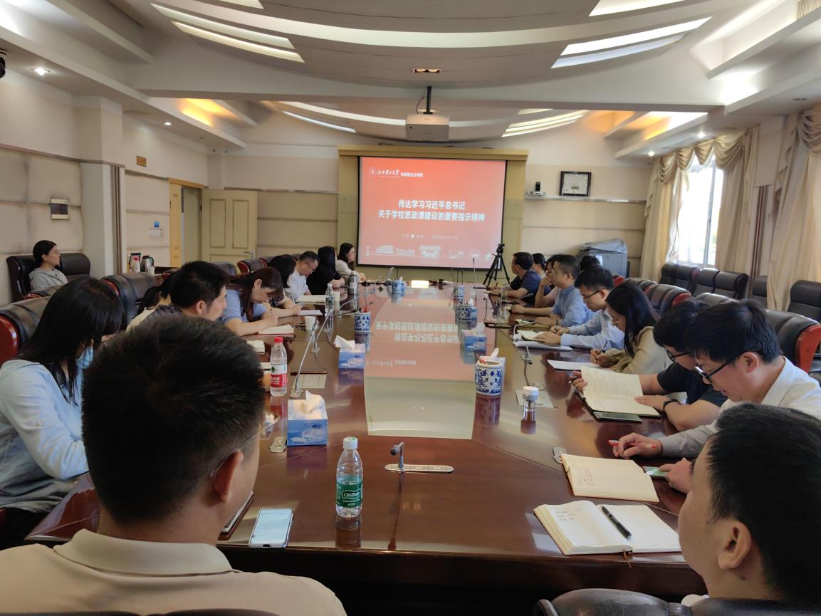 本网讯 5月14日下午,马克思主义学院在红旗校区原行政楼四楼第二会议室召开会议传达学习习近平总书记关于学校思政课建设的重要指示精神。学院全体教师参会,会议由学院院长邓显超主持。
