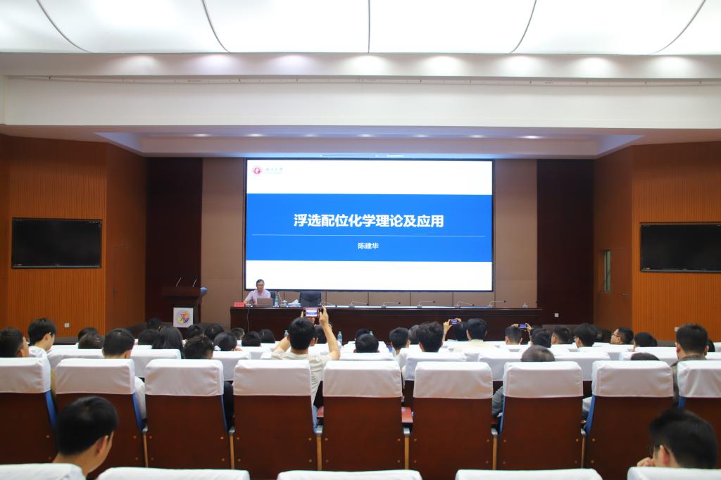 本网讯  6月5日,广西大学博士生导师陈建华教授一行来校交流,并在黄金校区逸夫楼报告厅作了题为《矿物浮选界面配位化学原理的学术报告。校国际创新研究院执行院长邱廷省、资源与环境工程学院副院长余新阳以及相关专业教师、学生参与本次讲座。讲座由余新阳主持。