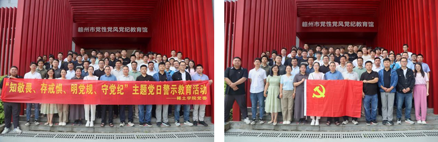 本网讯  近期,稀土学院党委持续开展党纪学习教育,通过邀请专家作专题报告、赴学校VR苏区精神馆和校史馆开展“恪守党纪根深固,廉政党风浩荡长”主题党日活动、前往赣州市党性党风党纪教育馆开展廉政警示教育等,进一步增强学院全体党员的纪律意识,提高师生党性修养,营造学纪、知纪、明纪、守纪的浓厚氛围,推动党纪学习教育走深走实。