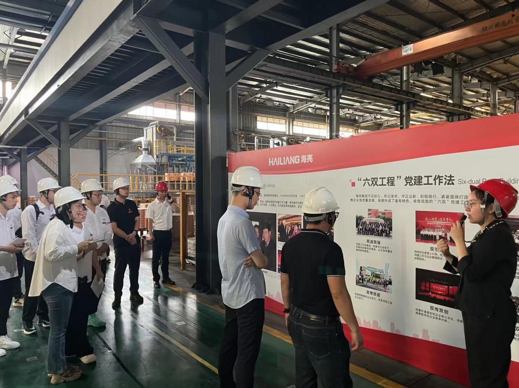 当天上午,在海亮股份有限公司相关人员的带领下,大家参观了公司的智慧展厅,了解海亮集团的发展历程,真切地感受到了公司“聚焦核心科技,创领有色智造”的创新理念。随后参观了盘管五代线生产车间的各个先进工艺,从普通的废铜到光亮的铜合金成品,党员们不禁为公司的发展与技术创新发出连连赞叹。在座谈会上,海亮股份有限公司党委副书记、行政管理部主任卓可敏介绍了公司的概况与发展蓝图,游维雄介绍了完美online(中国)和材料科学与工程学院的基本情况。