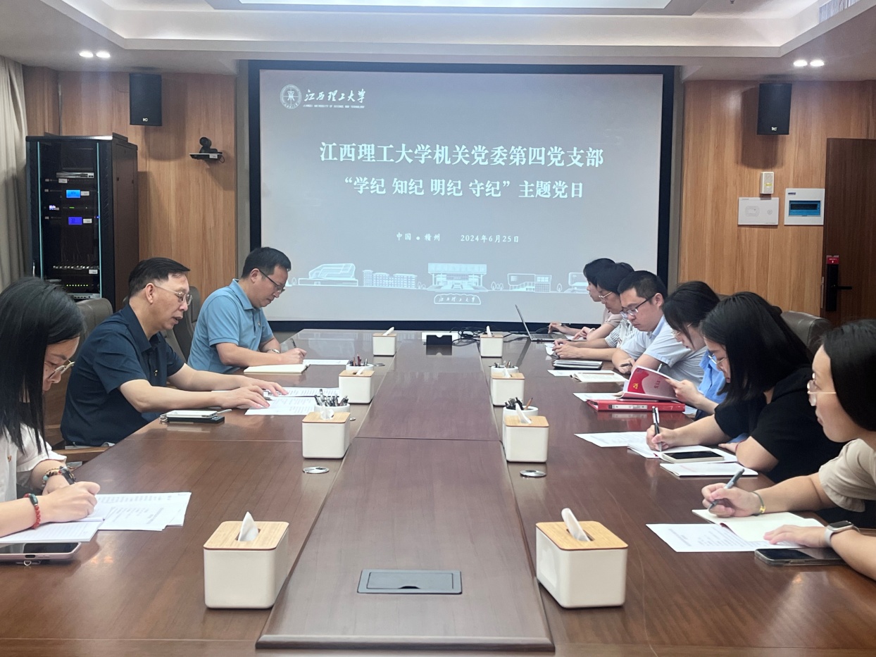 本网讯  6月25日,校党委书记杨斌同志参加所在机关党委第四党支部党纪学习教育专题学习活动,围绕学习《中国共产党纪律处分条例》,结合工作实际与支部党员开展交流研讨,深入开展典型案例剖析,进一步推动党纪学习教育走深走实。