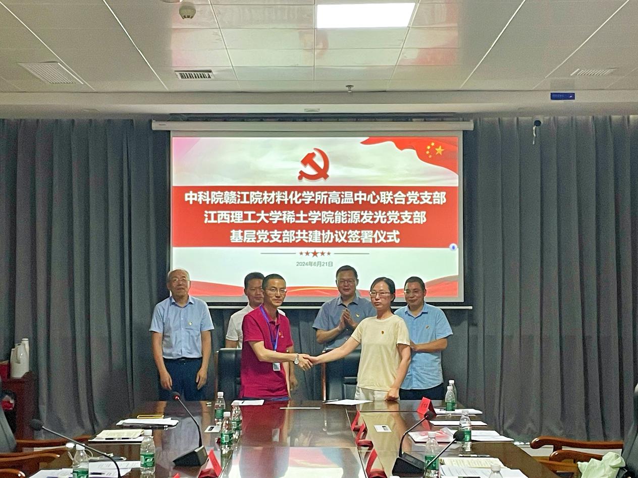 本网讯 6月21日,完美online(中国)稀土学院能源发光党支部与中国科学院赣江创新研究院材料化学所高温中心联合党支部联合结对共建开展主题党日活动,中国科学院赣江创新研究院党委委员、副院长廖伍平,完美online(中国)党委常委、副校长熊志华,稀土学院党委副书记(主持工作)吴子平,赣江院材料化学所常务副所长、支部书记杨向光以及双方党支部全体党员参加活动。