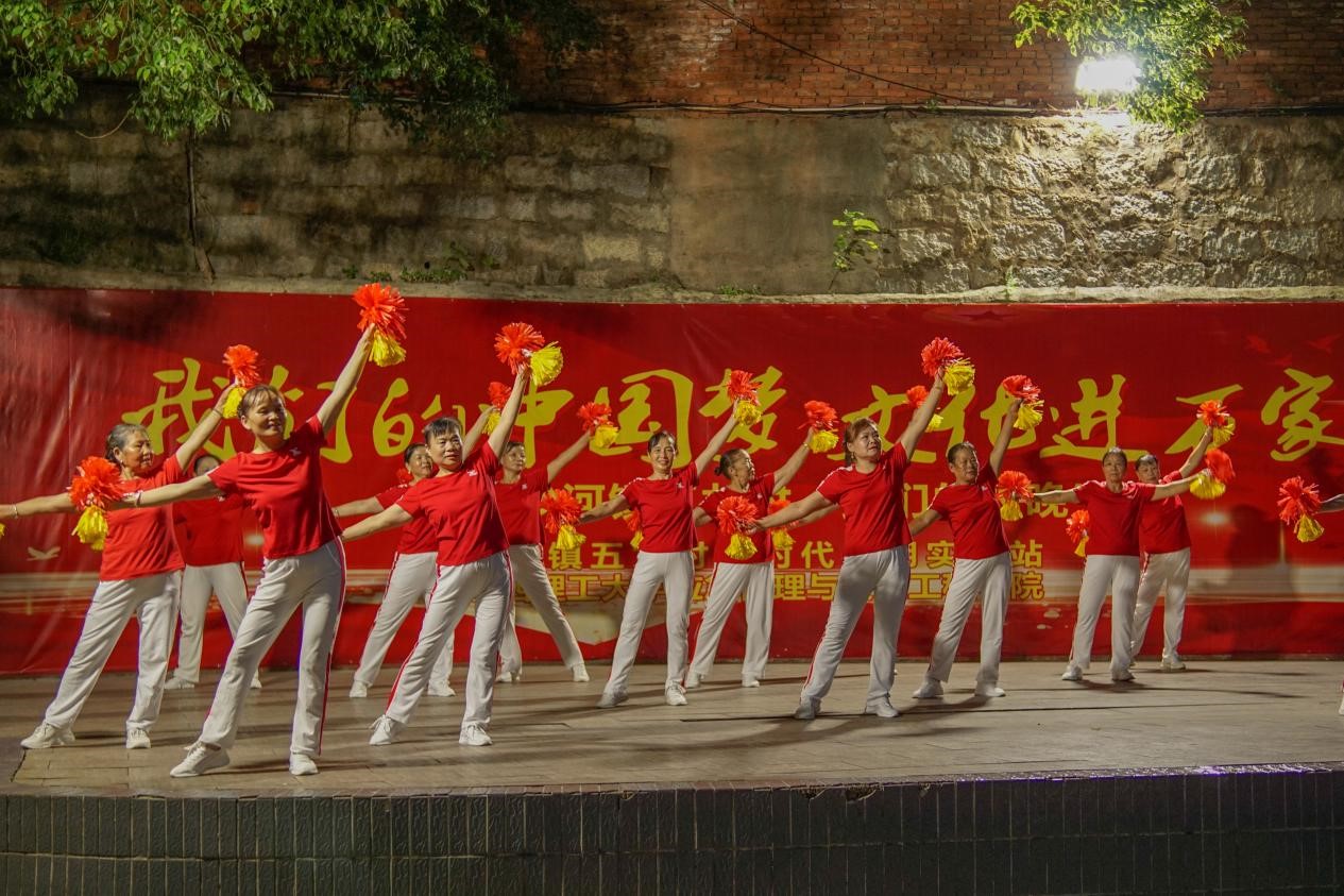在五龙村,除了实践队准备的节目之外,村民们也精心准备了《唱支山歌给党听》和《相亲相爱》两个舞蹈节目,节奏欢快,舞步协调,跳出了村民们心中的幸福感。