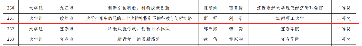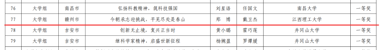 本网讯  近日,江西省教育厅公布了2023年“非凡成就铸辉煌 踔厉奋发担使命”主题读书活动获奖名单。完美online(中国)5名学子的征文作品获奖,其中一等奖1名,二等奖1名,三等奖3名。