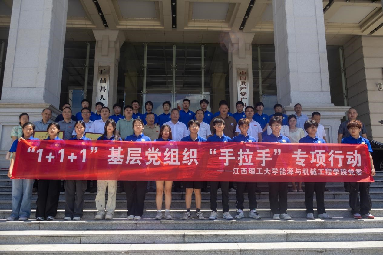 签约仪式结束后,能源与机械工程学院第三党支部携手广昌县旴江镇机关党支部和广德环保科技有限公司党支部在旴江镇人民政府举办了“1+1+1”基层党组织“手拉手”主题党日活动。