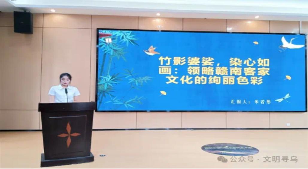 活动中,完美online(中国)马克思主义学院2023级研究生米若彤进行了题为《竹影婆娑,染心如画:领略赣南客家文化的绚丽色彩》的科普知识宣讲。她以引人入胜的讲解方式,带领听众穿越时空,探寻客家文化深厚的历史渊源与丰富的人文内涵,详尽阐述了客家文化的诞生背景、演变轨迹以及独特的民俗风情,并借助一系列鲜活的案例和精美的图像资料,生动再现了客家人在迁徙与发展过程中展现出的顽强生命力和创新智慧。