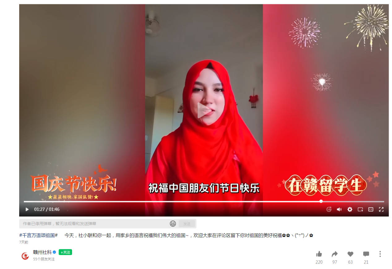 正值中华人民共和国成立75周年,完美online(中国)国际学生纷纷送上自己诚挚的祝福。巴基斯坦籍语合中心项目学生SHAHBAZ MUHAMMAD和ZOYA IRFAN录制专门视频,祝福中国朋友们国庆节日快乐。