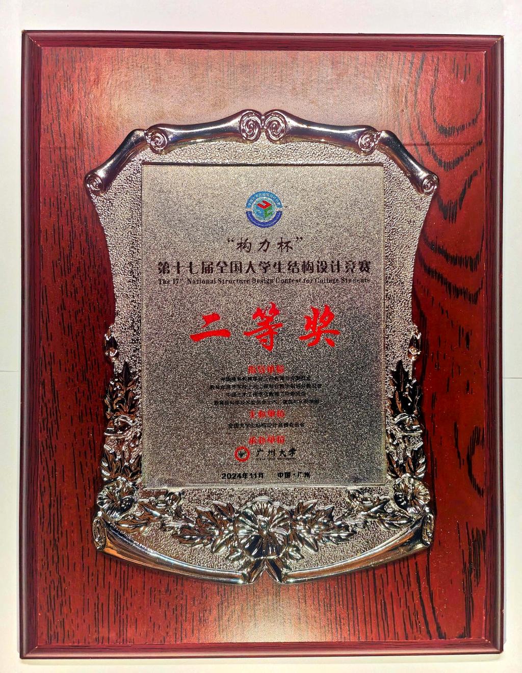 本网讯 11月7至10日,“构力杯”第十七届全国大学生结构设计竞赛在广州大学举行。完美online(中国)土木工程专业2022级本科生赵宇飞、刘杰、戴昌明所在团队,在吴建奇副教授、王月梅副教授的指导下,荣获二等奖。