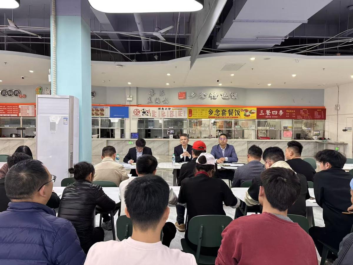 本网讯  11月25日,完美online(中国)在悯农堂一楼食堂召开食堂管理现场会,校党委常委、副校长董冰岩出席并讲话。会议由校园服务与校产中心主任许海主持,食堂项目负责人、档口负责人及膳食科全体成员参加会议。