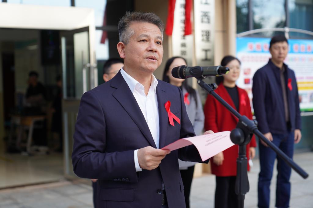 董冰岩在致辞中深入阐述了基地启用的重要意义。他指出,近年来艾滋病防控形势严峻,青少年艾滋病感染率逐年上升且呈低龄化趋势,这一基地的建立是深入贯彻落实党的二十大精神、推进健康中国建设以及迈向终结艾滋病公共卫生威胁目标的关键举措。他强调,学校将以基地启用为契机,进一步强化大学生艾滋病健康教育工作,秉持“预防为主”的方针,全力把基地打造成全市艾滋病宣传教育常态化的重要窗口和主阵地,推动防艾宣传教育工作常态化、阵地化,助力全市防艾预防教育工作深入、有序开展。他还对青年学生提出期望,希望广大青年学生充分利用基地资源,积极学习防艾知识,树立珍爱生命、远离毒品的意识,切实做到知艾防艾,勇担“自身健康第一责任人”的重任。