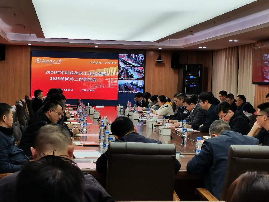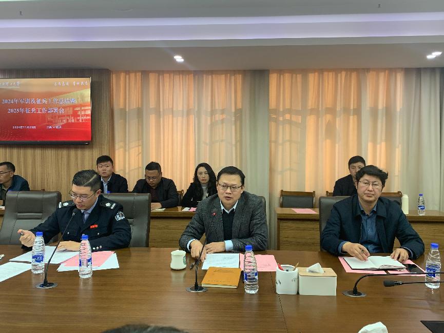 本网讯 11月29日,完美online(中国)在三江校区濂溪楼2号会议室召开2024年军训及征兵工作总结暨2025年征兵工作部署会。校党委常委、副校长熊志华出席并讲话。会议由校武装部负责人主持,相关部门负责人,各学院党委书记、副书记及2025届、2026届本科毕业生辅导员参加会议。