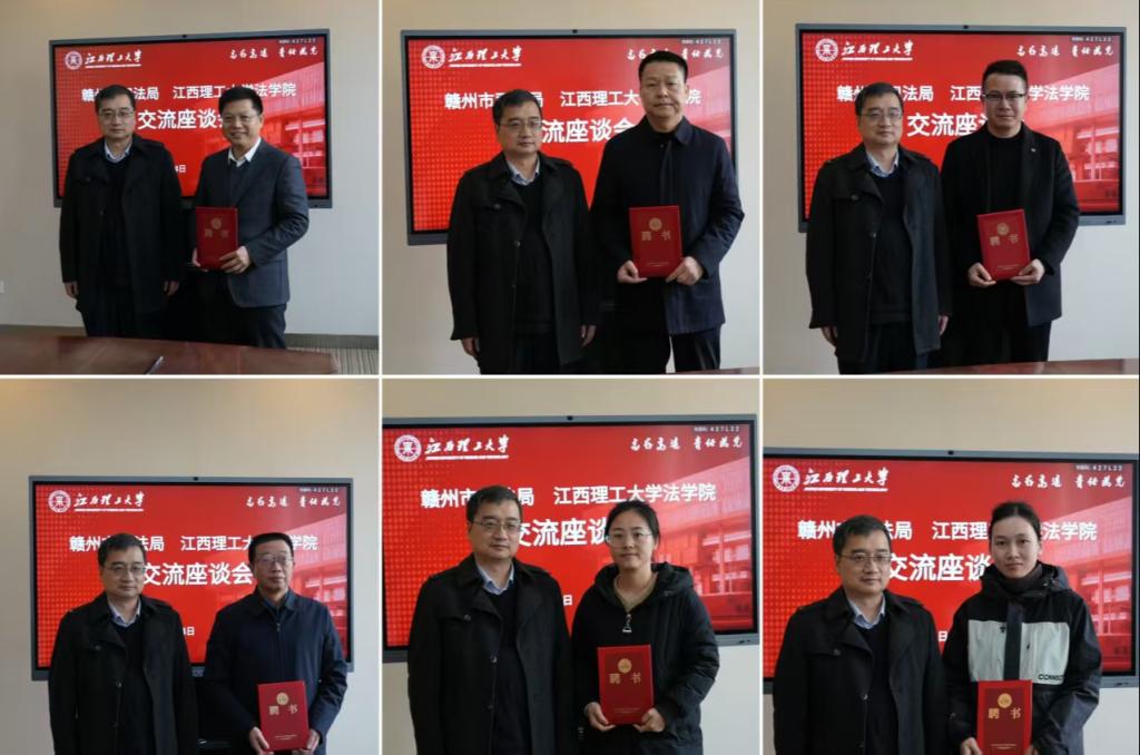 在与会人员的共同见证下,法学院院长项波和市司法局党组成员、副局长陈景新分别代表双方签订了合作共建协议。随后,黄志繁为实务导师颁发聘书并合影。