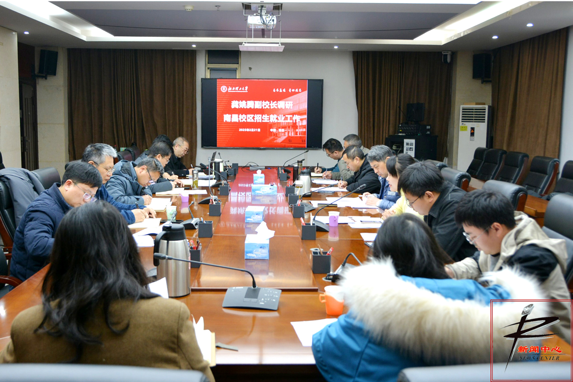 本网讯 2月21日,校党委常委、副校长龚姚腾到南昌校区调研指导招生就业工作,并在图书信息综合楼第一会议室主持召开调研座谈会。校招生就业处、南昌校区管委会和各学院相关负责人参加会议。