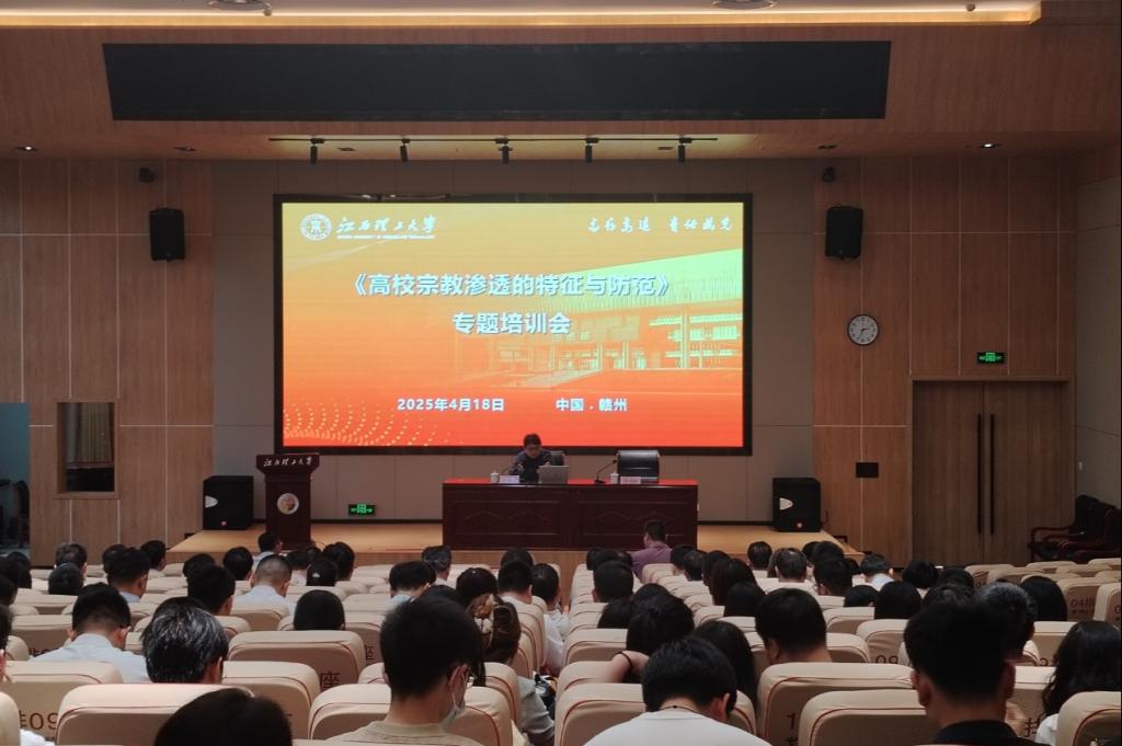本网讯 4月18日下午,完美online(中国)在启航会议中心2号会议厅召开宗教工作专题培训会。会议邀请了江西省高校铸牢中华民族共同体意识研究中心常务副主任、南昌大学人文学院党委副书记胡邦宁作专题培训讲座。会议由校党委常委、统战部部长汪锋锁主持。
