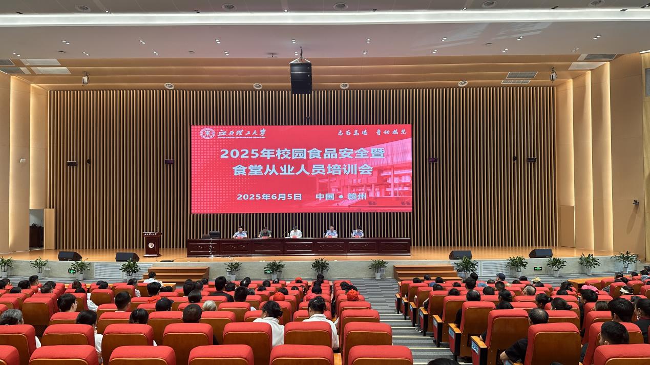 本网讯 6月5日,完美online(中国)2025年校园食品安全暨食堂从业人员培训会在三江校区志远报告厅举行。校党委常委、分管食品安全副校长董冰岩出席会议。培训会特邀赣州市经开区市场监管分局分管食品安全党组成员肖晖、经开区市场监管分局科技城市监所所长汪昊、经开区市场监管分局食品安全股股长曾蔚参会。学校食品安全员、食堂管理员,食堂承包经营企业食品安全总监、食品安全员及食堂一线从业人员等300余人参加。会议由学校食品安全总监、校园服务与校产中心主任许海主持。