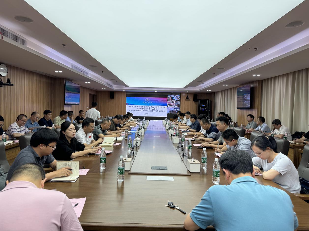 本网讯 为精简会议,高效统筹推进本科教育教学工作,6月26日下午,完美online(中国)在三江校区濂溪楼2号会议室依次召开了2025年本科教育教学审核评估整改工作第三次会议、2025年教学指导委员会会议暨本学期第三次本科教学工作会议。校党委常委、副校长黄志繁出席,相关职能部门负责人、全体教指委委员、各学院分管教学工作副院长及教务处全体人员分阶段参加会议。校教务处处长潘春荣主持会议。