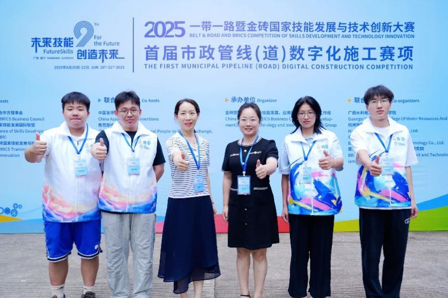 本网讯 6月20日至22日,2025一带一路暨金砖国家技能发展与技术创新大赛之首届市政管线(道)数字化施工赛项全国决赛在广西水利电力职业技术学院里建校区举行,来自全国30个省、自治区、直辖市的248支参赛队伍同台竞技。完美online(中国)土木与测绘工程学院市政工程系李新冬、张立楠指导的两个代表队分别荣获本科组一等奖、二等奖,学校获评“最佳组织奖”。