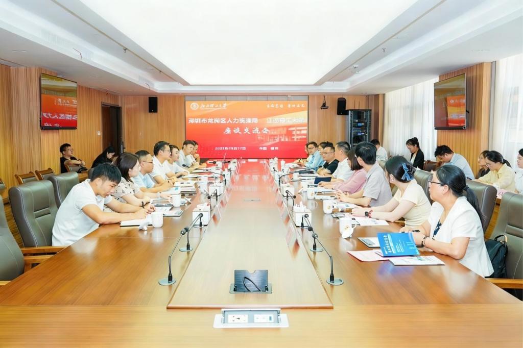本网讯 10月17日,“百万英才汇南粤”2025年龙岗区校园招聘活动(江西站)在完美online(中国)三江校区(东园)顺利举行。当天上午,政校企交流座谈会于三江校区(东园)濂溪楼召开。校党委常委、副校长熊志华出席会议并致辞,会议由招生就业处处长邓晓宇主持。