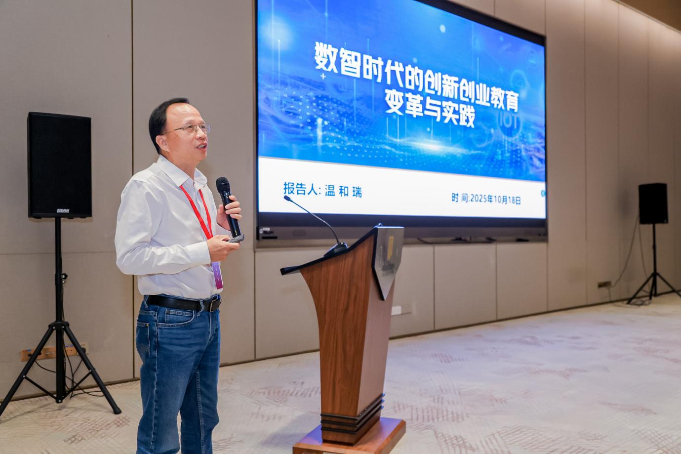 本网讯 10月18日,由中国高等教育学会指导,中国高等教育学会创新创业教育分会与上海财经大学联合主办的“教育强国与创新创业高质量发展”2025年学术年会在上海临港锦江国际酒店举行。完美online(中国)温和瑞教授应邀参会并在“创新创业学术交流”分论坛作题为《数智时代的创新创业教育变革与实践》的专题报告。